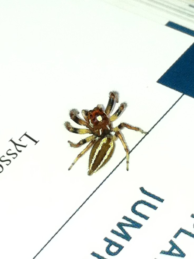 Salticids are a family of completely harmless spiders with 316 species, which is A LOT for a spider family. There is fantastic diversity among jumping spiders, but in general, they all have stout bodies and square-shaped heads, are happy in the sun, and usually on the move instead of waiting in a web. They can leap, scoot backwards, turn on a dime to face an encounter, and completely abort mission by jumping off a ledge (with a dragline “safety rope”, of course). They are some of the most colorful spiders and dare I say the cutest? Jumping spiders seem to be high on the favorites list in the spider world. Of all the 120 spider families, the jumpers are the ones who prompt words like “awwww” from the mouths of people who don’t even like spiders. Take Lucas, the Spider, for example. Lucas is an animated, fuzzy, curious, blinking spider with a child’s voice which makes it difficult for people to describe spiders as “disgusting” and “horrific”!