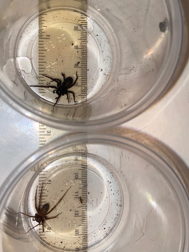 These spiders usually stay right where you can see them, except in June, when the males are on the move looking for females. They can also be accidentally uncovered (and they take off running) if you’re rummaging around boxes or other stuff that’s been sitting around for a long time. Some end up in unfortunate places like the sink or washing machine and are unable to get themselves out because they can’t climb smooth surfaces.
