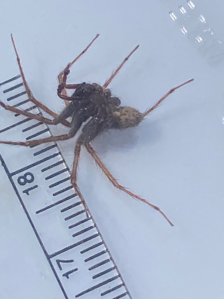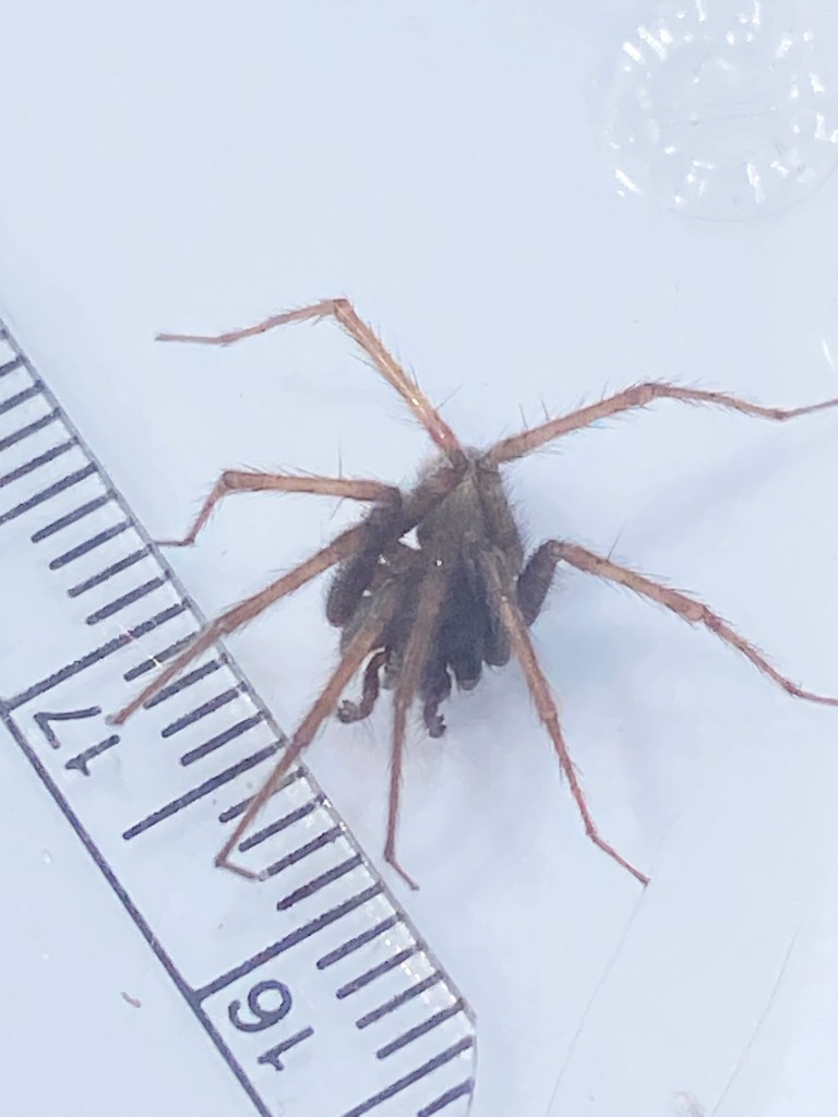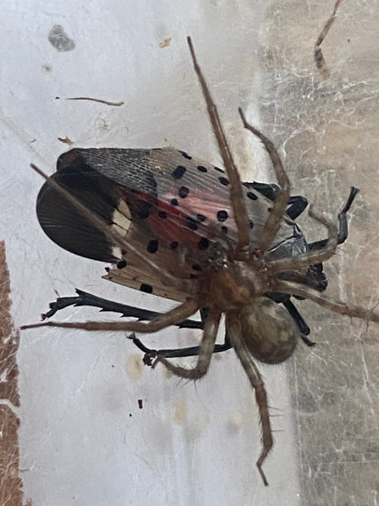 Barn funnel weavers (Tegenaria domestica) are just one kind of spider in the Agelenidae family which includes grass spiders and hobo spiders; all make the characteristic funnel-shaped web. We don’t have hobo spiders around here. I’ve collected spiders from friends’ houses who thought they had hobo spiders and they’re always barn funnel weavers. Barn funnel weavers are originally from Europe and arrived in America with the first travelers by sea. They’re basically American citizens now, having naturalized comfortably among humans. They’ve even taken their allegiance a step further by offering invasive pest control. Barn funnel weavers are one of the few spiders that will eat the spotted lantern fly, which is plaguing Western Pennsylvania right now.