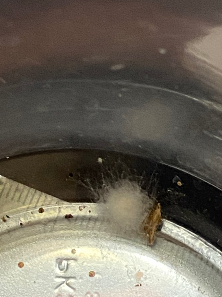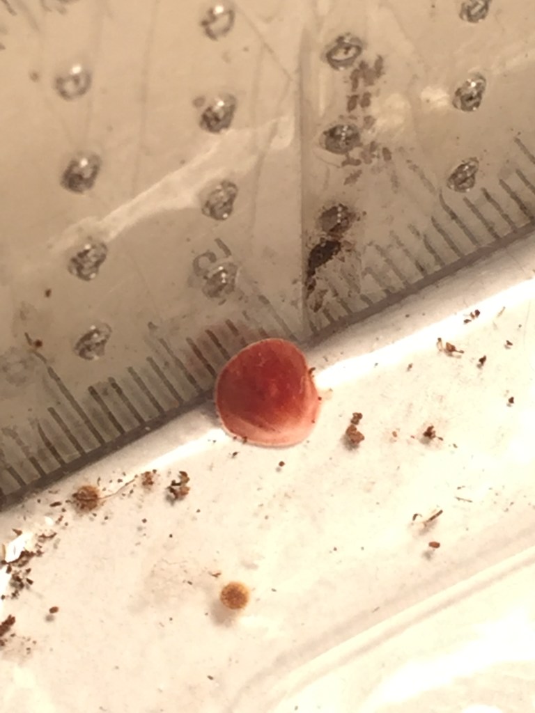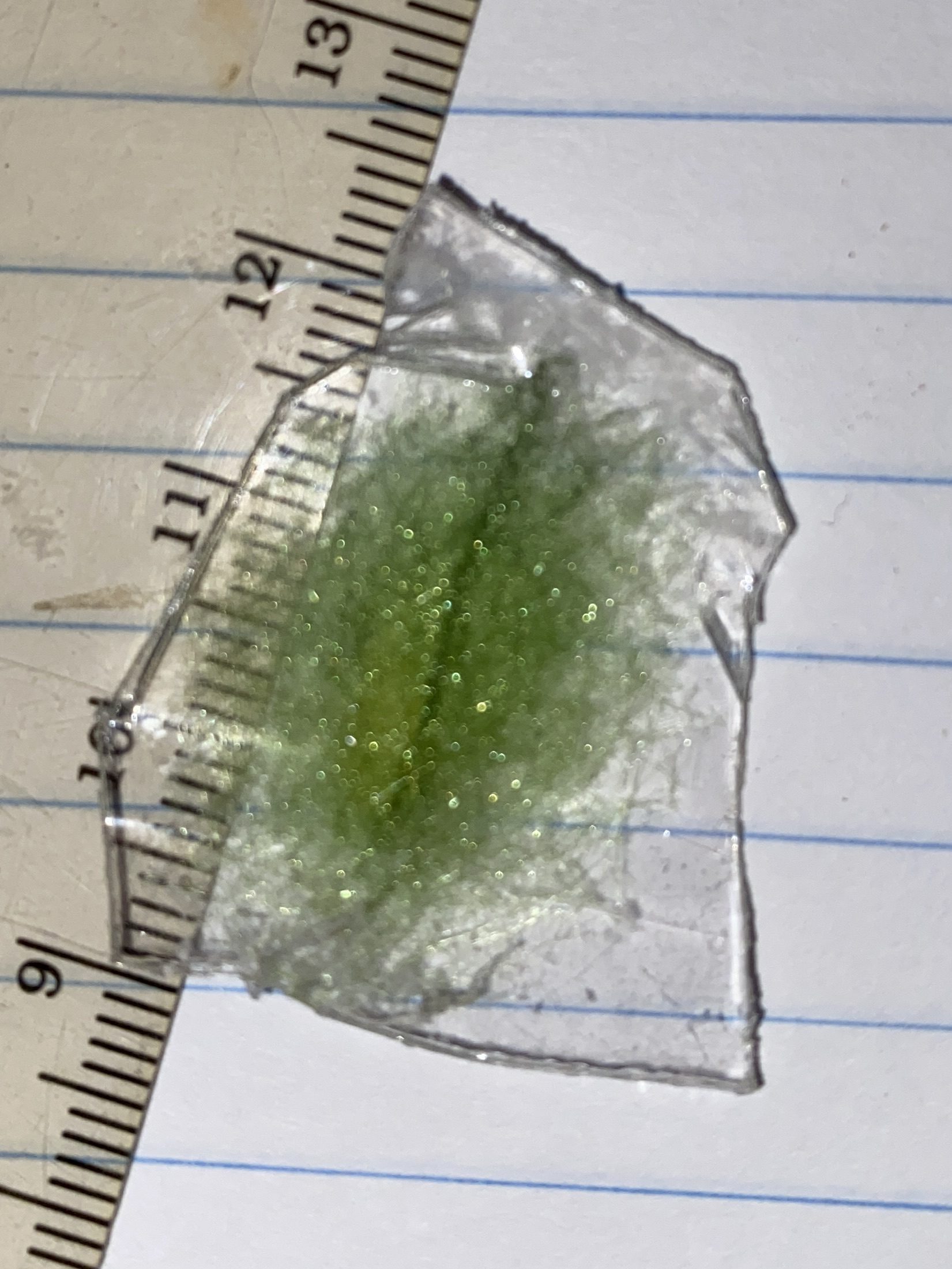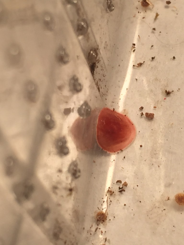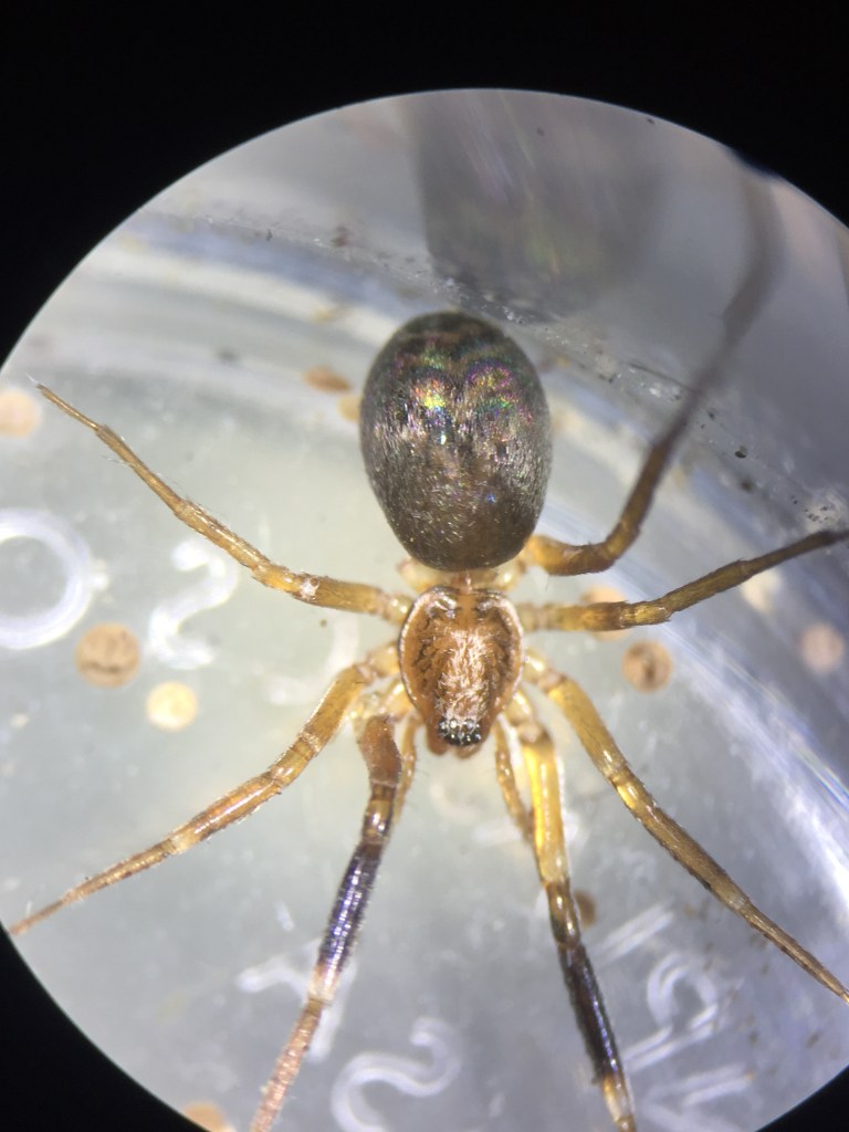 This shiny gem of a spider makes flat, papery discs that don’t even feel like silk. This is an egg sac from Phrurotimpus in the Phrurolithidae family. These are small, spiders often found under things like stones or bark. They will guard their egg sacs although parasites have come up with very sneaky ways to eat them anyway. These spiders are quite small and shy so you’re more likely to see the sac instead of the spider. I often find these attached to stones where there’s a divot or dent in the rock and I always wondered what those red things were until I caught one that was gravid and she attached her egg sac to the side of the plastic enclosure.